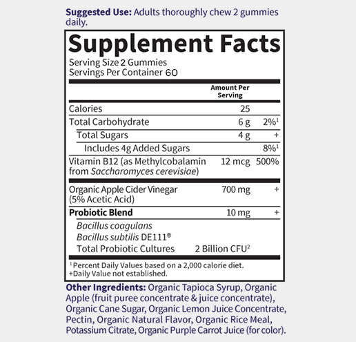 Ingredients For ACV Gummies (1 Bottle - 60 Gummies )